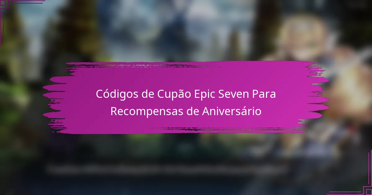 Novos códigos de cupão Epic Seven são tipicamente lançados a cada poucas semanas, frequentemente coincidindo com eventos especiais ou atualizações. Os jogadores podem esperar ver uma mistura de códigos promocionais que podem fornecer moeda no jogo, itens ou outros bônus.